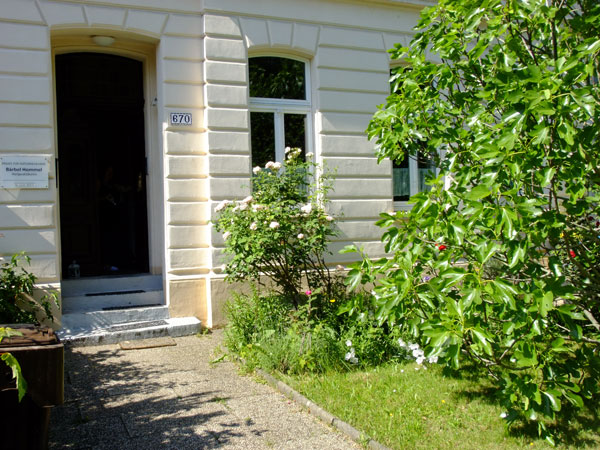 Meine Praxis befindet sich in einem schönen Anbau im Garten unseres Hauses in Krefeld-Bockum auf der Uerdinger Strasse 670.